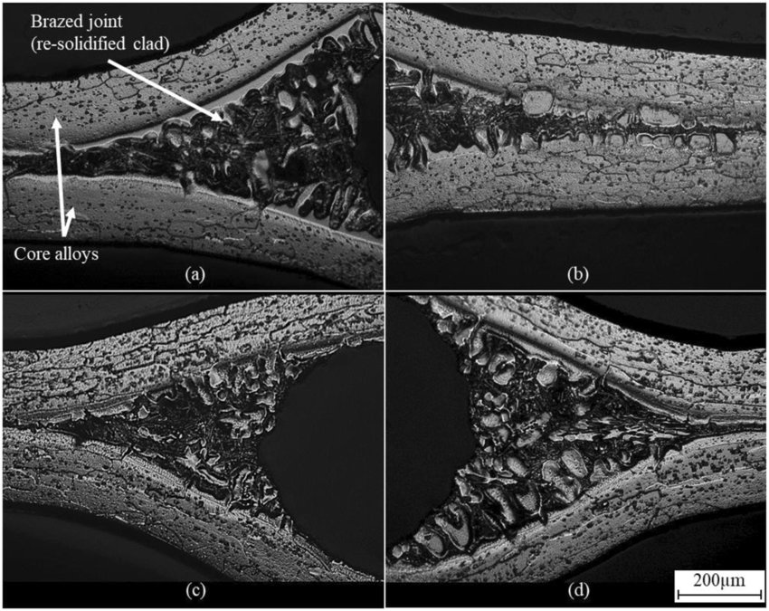 I researched aluminum alloy performance in heat exchanger brazing by replicating production conditions in mini furnaces, fabricating test coupons, and analyzing joint behavior with optical and electron microscopy. Trials varied parameters like temperature, atmosphere, and cooling rate to predict large-scale performance and identify risks such as poor joints, porosity, and leaks before production.